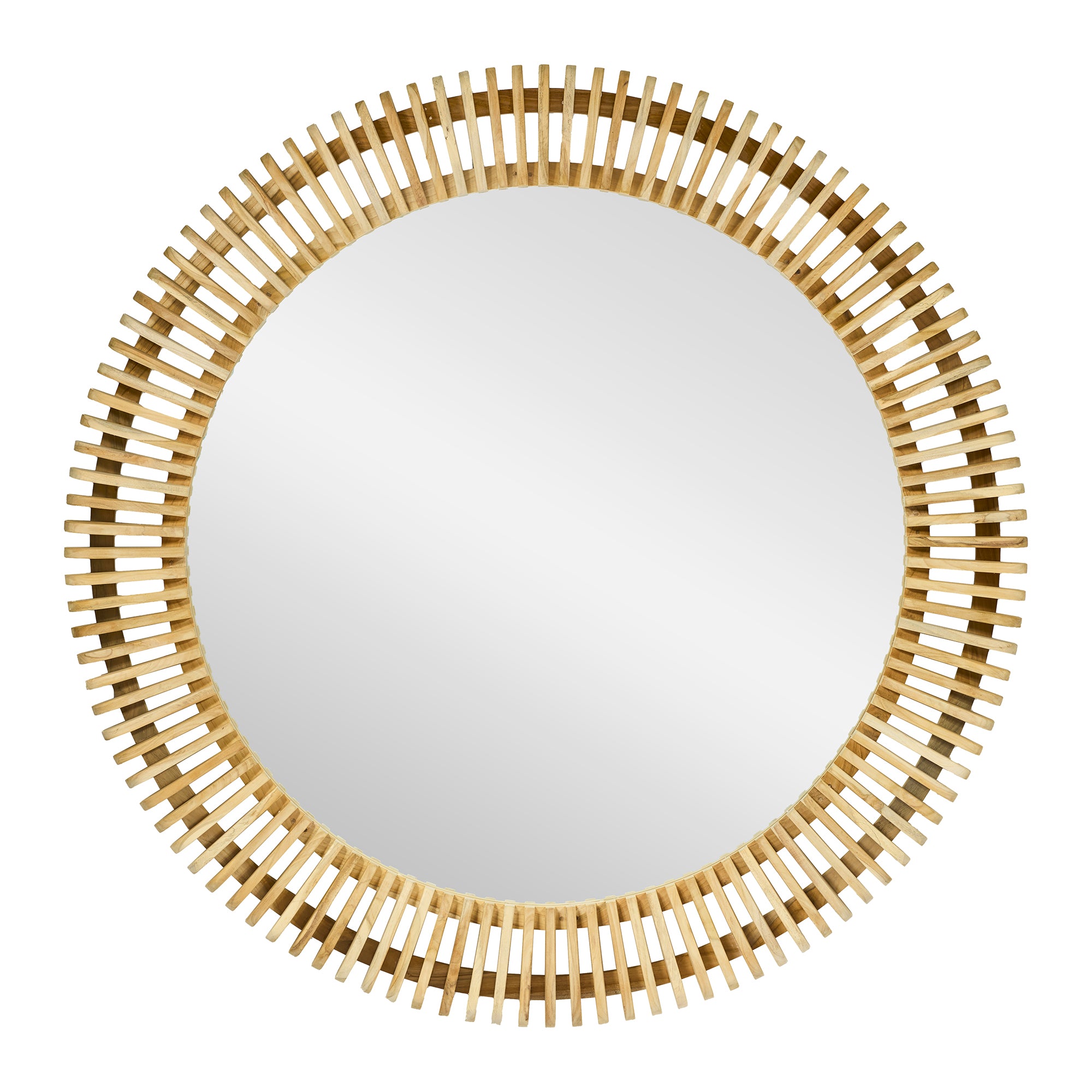 Lo specchio rotondo PORTMAN è un complemento d’arredo che coniuga estetica naturale e maestria artigianale. Realizzato interamente in legno di teak, è caratterizzato da una cornice tridimensionale composta da listelli disposti radialmente, che creano un gioco di profondità e luci. Il teak, legno nobile e resistente, conferisce allo specchio un aspetto caldo e autentico, con sfumature uniche che valorizzano ogni ambiente.