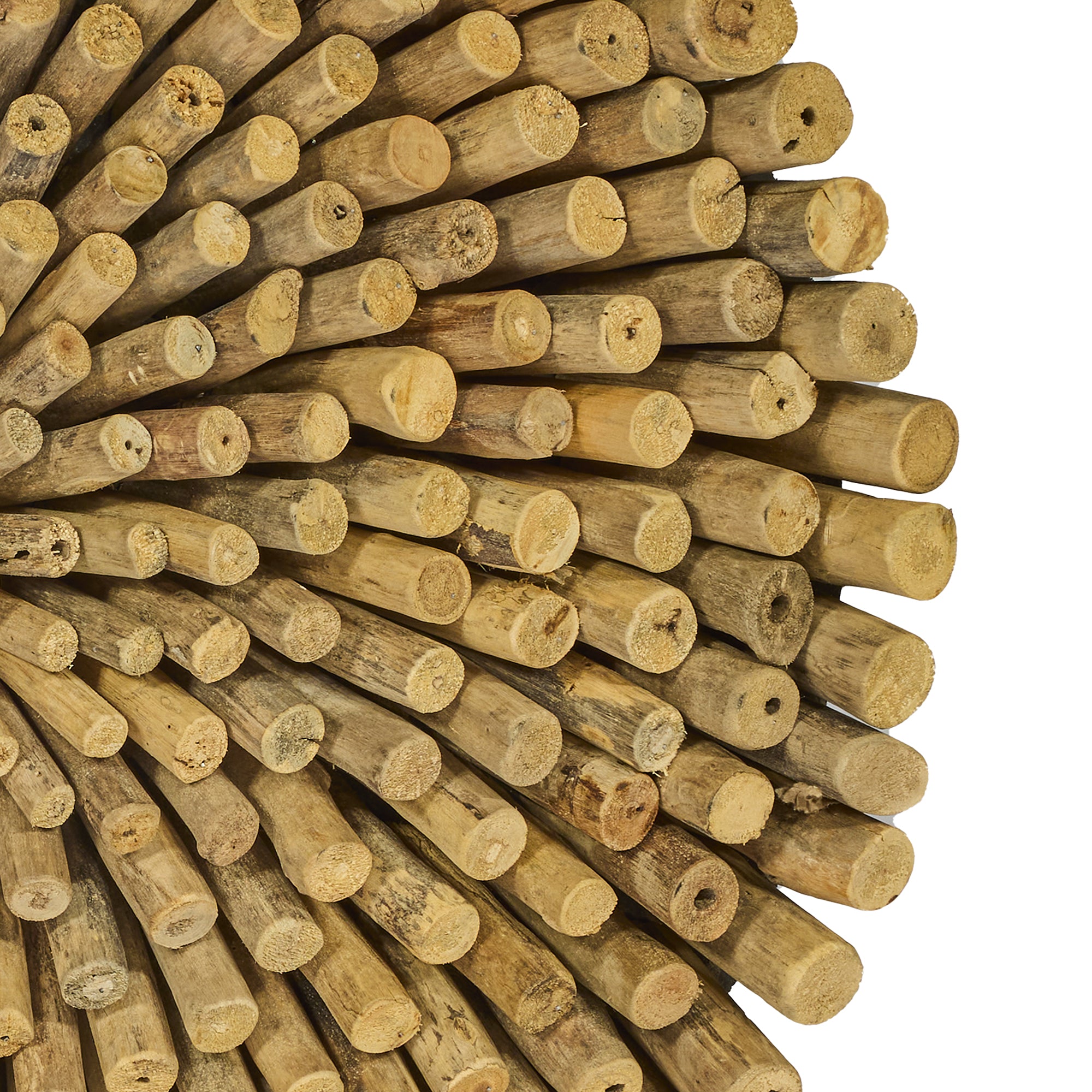 Porta un tocco autentico e naturale alla tua casa con SUN, la decorazione da parete in legno di mare Ø70 x P5cm. Realizzata artigianalmente con legnetti levigati dal mare, questa composizione circolare esprime tutta la forza grezza e l’armonia della natura. Ogni pezzo è unico, grazie alla varietà di forme e sfumature del legno recuperato, che viene disposto a raggiera con una tecnica meticolosa per creare un effetto tridimensionale di grande impatto visivo.