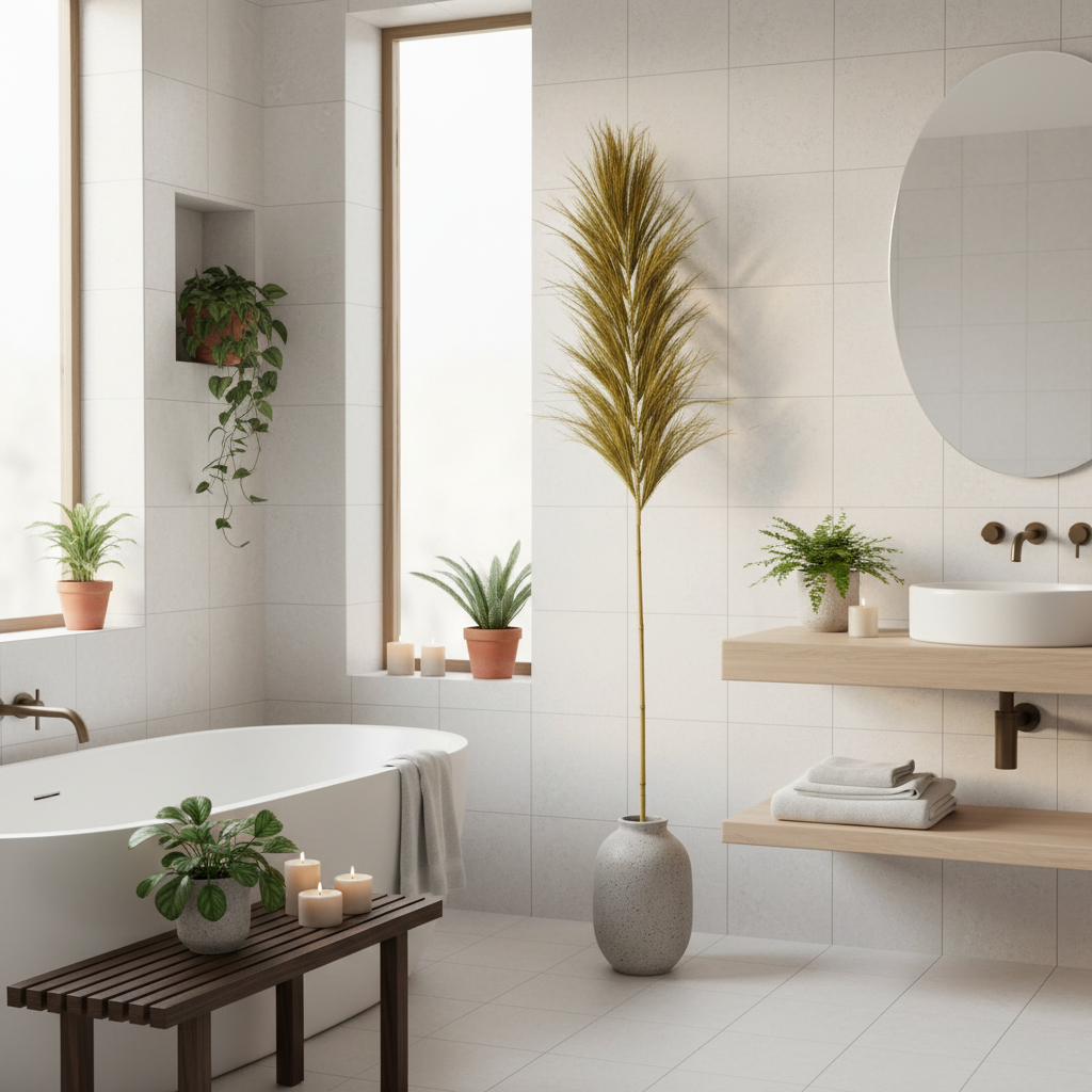 RAYUNG: foglia decorativa bamboo e rayung L23xH200cm. Fibra vegetale indonesiana texture leggere vibranti. Fusto bamboo solidità, foglie rayung intrecciate a mano movimento. Altezza scenografica, tonalità calde. Vaso alto, composizioni. Salotti, ingressi, show-room. Estetica e sostenibilità. Ogni pezzo unico.