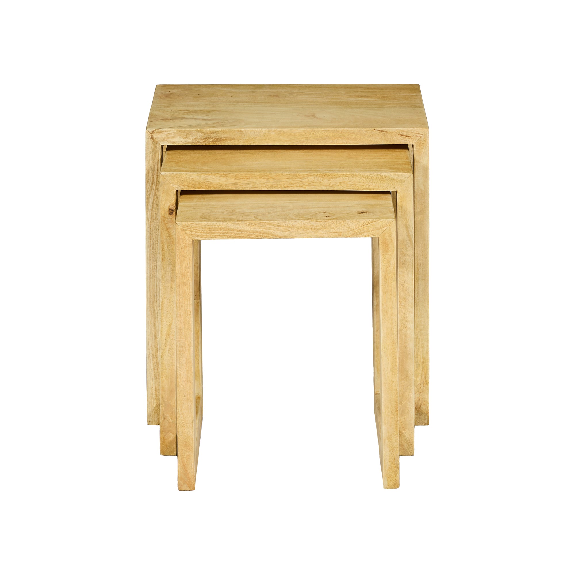 Il set "BOWER" è composto da tre tavolini realizzati in pregiato legno massello di mango, un materiale resistente e durevole che conquista con le sue sfumature naturali e le venature uniche. Ogni tavolino è rifinito a mano per valorizzare la bellezza autentica del legno e garantire qualità artigianale.